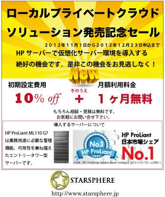 今回の「ローカル プライベート クラウド」ソリューションの提供開始に伴い、2012年12月23日まで初期設定費用の10%引き、併せて月額利用料金1ヶ月無料キャンペーンを実施します。