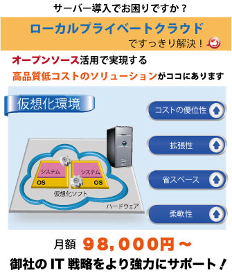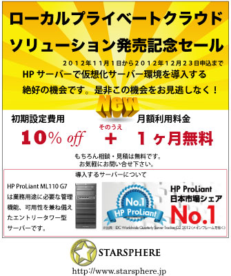 スタースフィア合同会社(東京都町田市、代表:バンマーネン彰子、以下スタースフィア)は本日2012年11月1日から、オープンソースを活用した中小企業向け仮想化サーバー構築ソリューション「ローカルプライベートクラウド」を提供いたしします。
