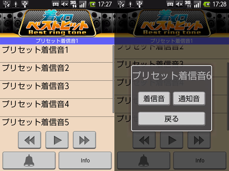 「google play」→「アプリ検索」→「着メロベストヒット」