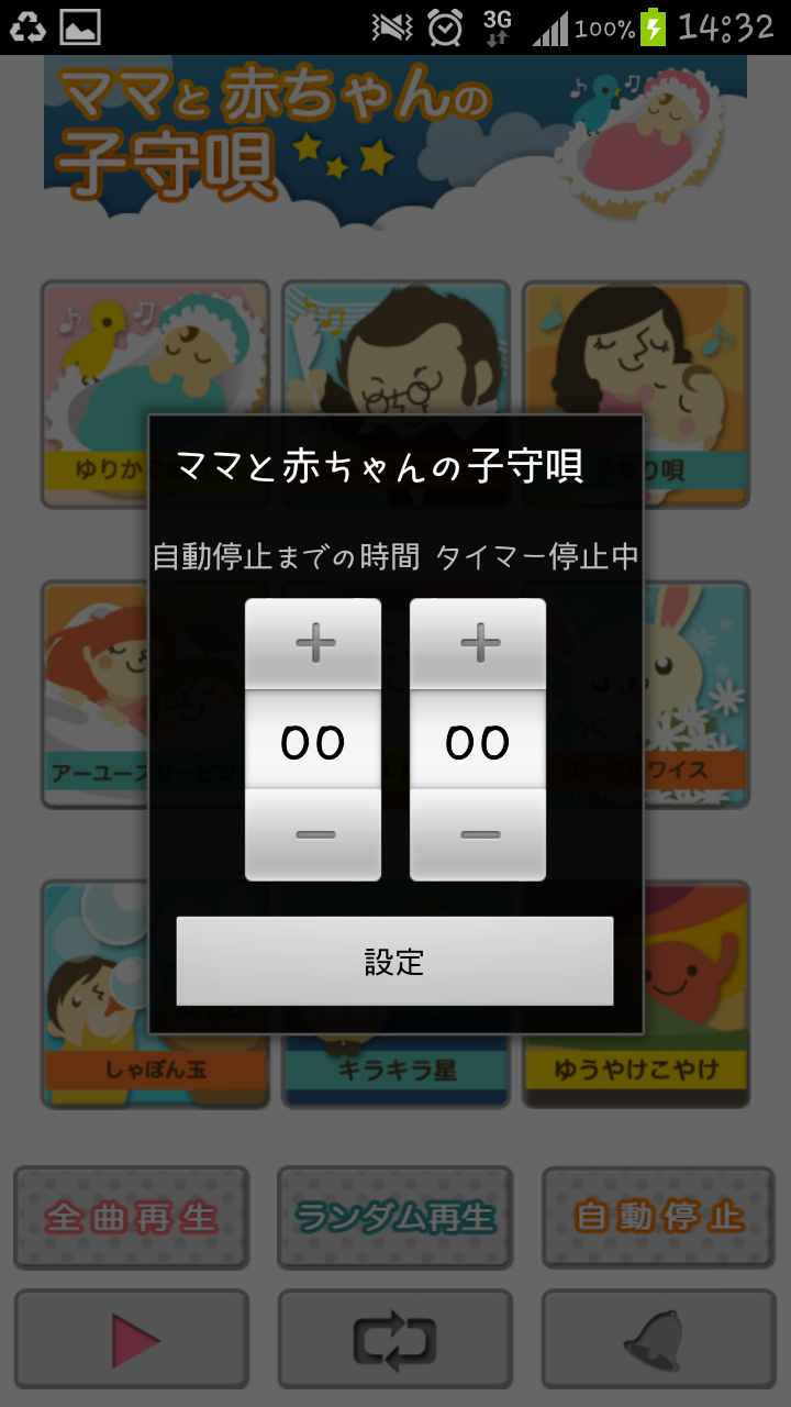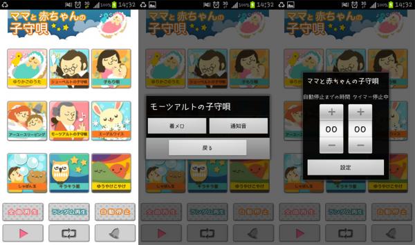 「google play」→「アプリ検索」→「ままとあかちゃんの子守唄」