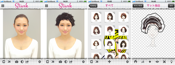 さらに Sturk を特徴付ける機能がヘアスタイルの切り出し機能です。この機能によりユーザが登録した任意の顔写真から、髪部分だけを簡単に抽出し自然な形で別の顔写真に合成できるため、スタイリスト自身が手がけたヘアスタイルを別の顧客に提案するなど、サロンで顧客に提案するときに充分な威力を発揮します。