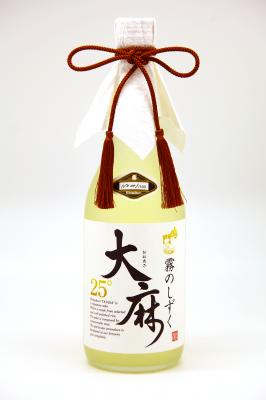 弊社では霧造り製法という独自技術を開発し、平成12年~平成18年まで「純米霧造り生25度」という清酒を販売していました。米と水だけの純米清酒を、生のまま低い温度で霧状にし、水より軽いアルコールや香気成分などの旨みだけを集め、水より重いタンパク質や脂質などの雑味は取り除いたもので、アルコールの濃度は高く、深い香りの日本酒として注目を集めていました。
