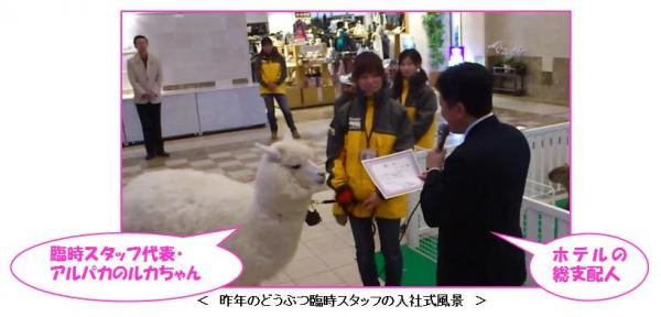 ホテルエピナール那須では、2012年12月3日(金)~2013年3月15日(金)の冬期期間中、昨年同様、テレビ番組出演で人気沸騰の「那須どうぶつ王国」のどうぶつ達を臨時スタッフとして採用いたします。