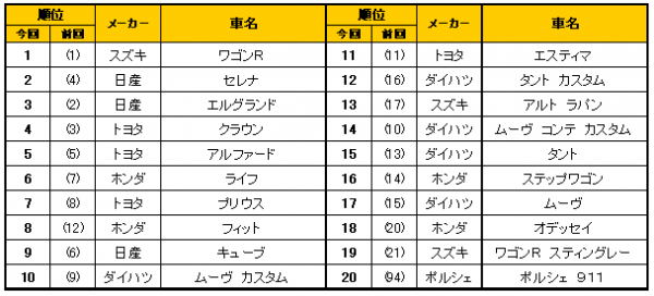 10月のランキングでは、先月に引き続いてワゴンRが1位を、そして前月4位だったセレナが2位に浮上し、 前月2位だった