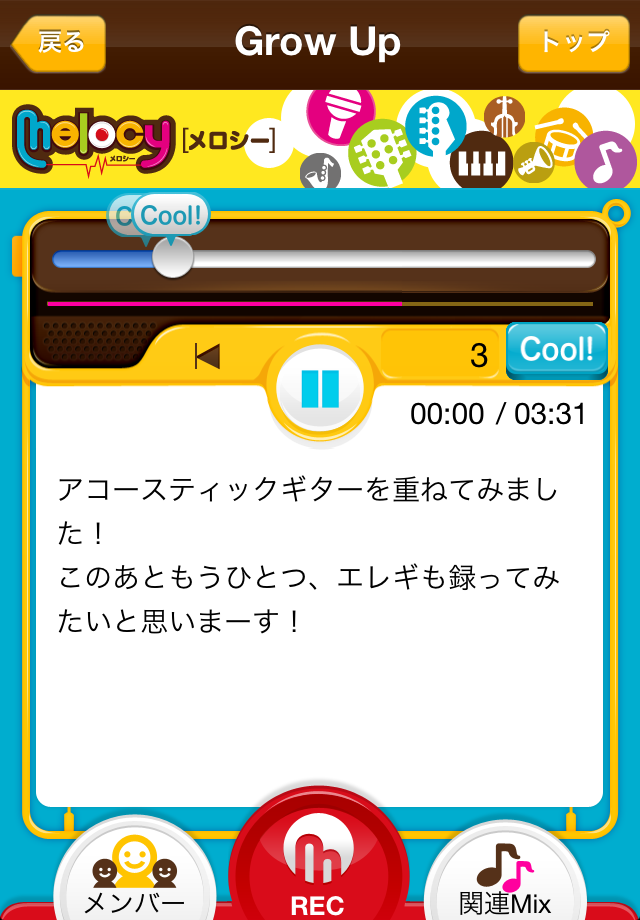 今回追加したCool!機能は、曲のなかで「カッコいい」「上手い」など感じたタイミングを、他のユーザーと共有できる機能です。曲の再生中にCool!ボタンを押すと、そのタイミングが投票され、他のユーザーにも公開されます。