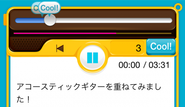 今回追加したCool!機能は、曲のなかで「カッコいい」「上手い」など感じたタイミングを、他のユーザーと共有できる機能です。曲の再生中にCool!ボタンを押すと、そのタイミングが投票され、他のユーザーにも公開されます。