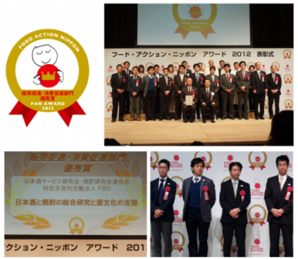 この度日本酒・焼酎の提供方法の研究を中心とした酒類の総合研究、及び日本における酒文化の発展および関連業界の支援の取り組みが評価され、フード・アクション・ニッポン アワード2012におきまして、販売促進・消費促進部門 優秀賞を受賞いたしました。