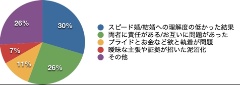 アンケートの結果、今回の離婚騒動については「スピード婚」や相手のこと、「結婚」ということに対して理解が低かった。という見解が一位。メディアでは、どちらか一方の意見を取り上げることが多いようですが、プロの目線では、お互いに問題がある。という意見が多いようです。