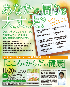 日時 11月20日(火) 11:30~(受付) 12:00~(セミナー) 12:30~(食事)