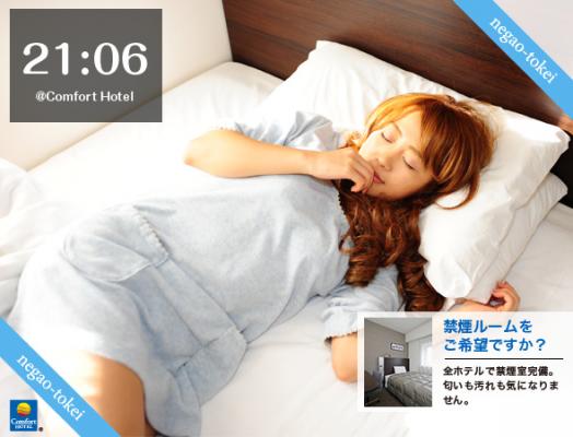 『寝顔時計inコンフォートホテル』は、チョイスホテルズジャパンが展開する、コンフォートホテル(全国51店舗)のプロモーションの一環として制作されました。