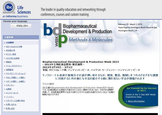 学会:「Biopharmaceutical Development & Production Week 2013 -2013年生物医薬品開発・製造週間-」