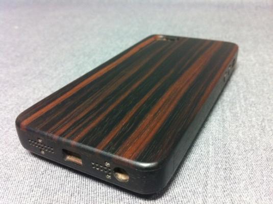 『Timber CASE for IPHONE』は従来の木製ケースにない画面下方向からケース内に挿入、ネジで固定する封入方法により画面側、背側に切れ目が現れず、またスイッチまでも木製で統一されているため、既存のケースに比べより木材とiphoneの一体感の増した満足いただけるものとなっています。製作はマシニングセンターでの削りだした後、手で磨き上げ、塗装は主に蜜蝋仕上げになります。使用されている木材は黒檀や紫檀、ウォルナットなど、いずれも高級家具や工芸品などに使われる銘木で、所有欲を満足させ、人に自慢できるアイテムです。