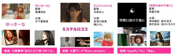 各レコード会社協力のもと、SSFF & ASIAに公式にエントリーされた楽曲にインスパイアされ、クリエイターが自由に制作したショートフィルム。
