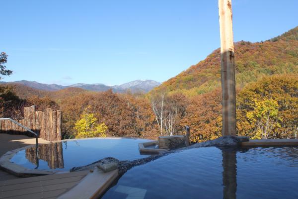男女別の温泉露天風呂となる浴槽は、それぞれテーマがあり、標高1,967mの巻機山(まきはたやま)をはじめとする越後の山々を望む雄大な眺望が特長の『眺望の湯』と、高原らしい白樺の深い森林に包まれフィトンチッドによるリラックス効果(森林浴)も楽しめる『白樺の湯』があります。(昼夜で男女入替となります。)