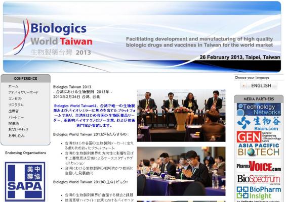 会議:「Biologics Taiwan 2013-台湾における生物製剤 2013年-」
