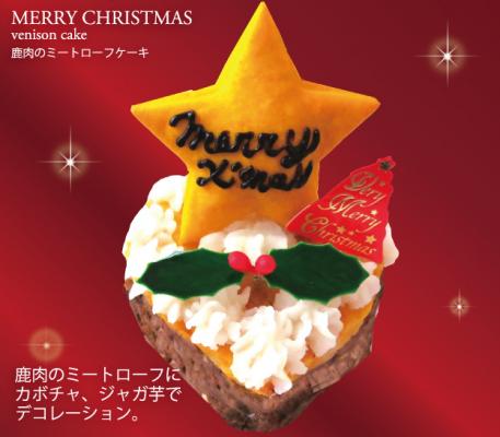 鹿肉のミートローフをクリスマスケーキの様にお洒落で可愛くデコレートした