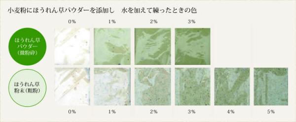 小麦粉と混ぜる場合でも、粒子が細かいので粉の間に野菜パウダーが入りやすく、少量での発色、風味がでます。