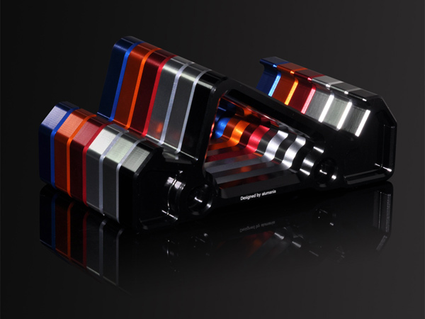 alumaniaスマートフォン用アルミケース同様、オールアルミ削り出しのアルマイト仕上げです。アルミの質感を際立たせ、存在感を強調させる「アルマイト」仕上げのカラーラインアップにはシルバー、ガンメタ、ブラック、レッド、オレンジ、ブルーの計6色をご用意しております。※ディスタンスバーは全色シルバーです。