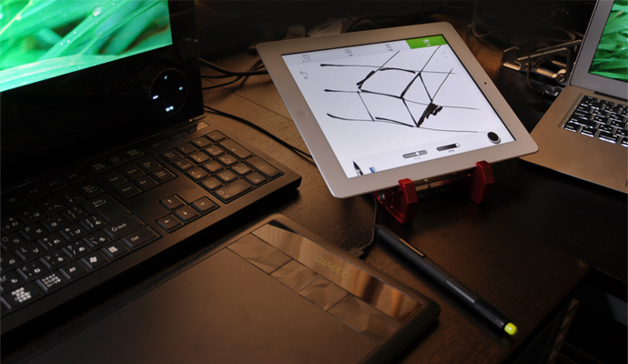 3. 本体形状の2種類の角度で端末を立てた状態と寝かせた状態でご利用いただけます。