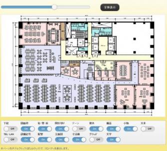 また、フロアマップの画像はベクターデータで生成されるため、拡大・縮小してもビットマップやJPEGイメージのように表示が乱れることはありません。
