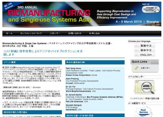 会議:「Biomanufacturing & Single Use Systems