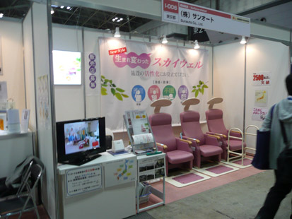 弊社の展示ブースにもたくさんのお客様が気軽にお越しいただき、施設用電位治療器「スカイウェルSW-9000H」にお座りいただきました。