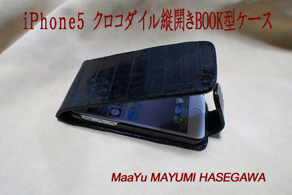 iPhone5クロコダイル革縦開きBOOK型ケース (日本製)