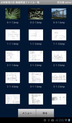 そうしたご要望を受けて、点検内容を図面や写真をタブレットPC側に転送し、作業中、随時確認できる機能を搭載いたしました。