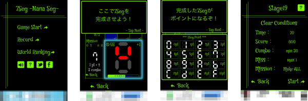 本アプリは、そのデジタル要素を採用し、「7セグメント」が落ちてくるのを完成させるという、非常にシンプルなゲームデザインと、右脳が刺激されて活性化することをコンセプトとしています。