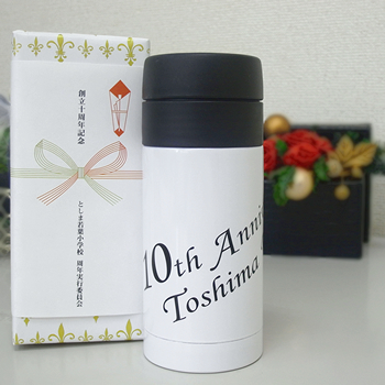東京都北区の小学校が創立10周年の記念式典で、全校児童、来賓、職員の方々に配られた記念品。男女を問わず使用できるサーモボトルは、実用的でとても好評だったそうです。尚、式典の様子は保護者からも大人気の同校HPで、詳細が伝えられています。