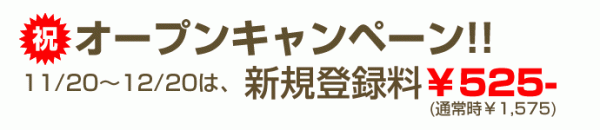 オープン1ヶ月(11/20~12/20)はオープニングキャンペーンにつき会員登録料が525円!!