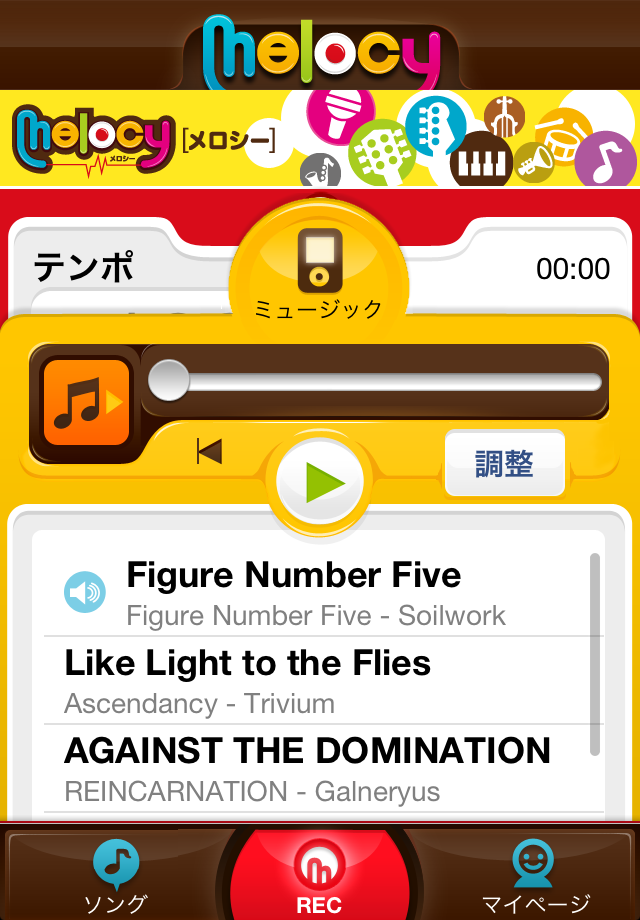 melocyでは、iPhoneアプリで録音した演奏に、他のユーザーが演奏を重ねて録音できます。例えば最初のユーザーがドラムを公開し、別のユーザーがベース、ギター、ボーカルなどを重ねることで、楽曲を完成させます。