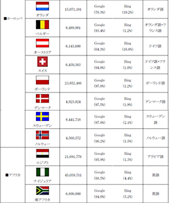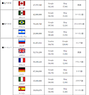 【世界40の国と地域における地域別、検索エンジンシェアの総評】