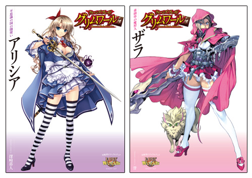 ▲『クイーンズブレイド グリムワール』第1弾:「不思議の国の闇使い アリシア」と「赤頭巾の魔狩人 ザラ」