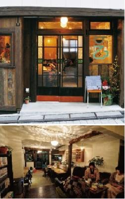 お客様が持ち込まれた大正時代の古建具と震災を経験した無垢のケヤキ板を、こだわり空間の古木とともに再生させたスローカフェ