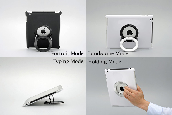 今回ご紹介するのは、裏面に回転リングが付いたNew iPad(第3世代)/iPad2用のケース。iPadにぴったりフィットする薄型フォルムは最薄部1.37mm。スタンド部にはアルミニウムと亜鉛合金を採用し、重さもわずか166gと軽量です。