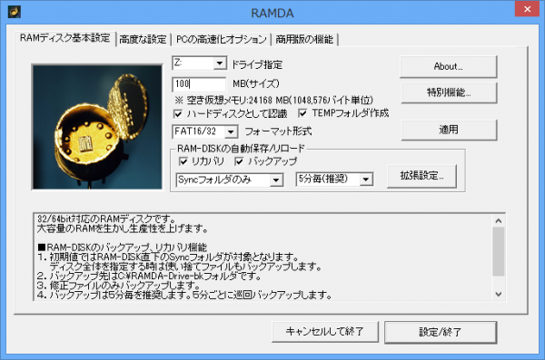 RAM-DISK「RAMDA」の正規ユーザにはベータテストを終えた時点で無料アップデートを保証します。