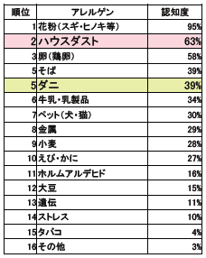 ダニ・ハウスダストに関する意識調査