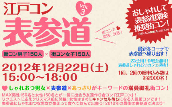 その江戸コンが12月22日に表参道の地域活性化を目指し、江戸コンin表参道を開催いたします。