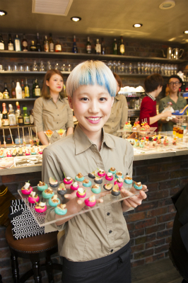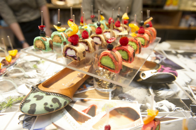 レコールバンタンの学生達は、『Jeffrey campbellらしさと奇抜さ』をテーマにレシピを考案。学内選考により選ばれた12人の学生達が更に考案を重ね作り上げた、サーモンやレバーとフルーツを合わせたポップな彩りのシューや、スープ、ピンチョス等のフィンガーフードのほか、ライチやイチゴ、マンゴーを使ったプリン等のグラスデザートなどの作品を、展示会場で招待客に振る舞いました。デザイナーのJeffrey campbell 氏には、「他の国の広告でも使用したい」とご提案頂く程に、レコールバンタンの学生達の作品を高く評価頂きました。