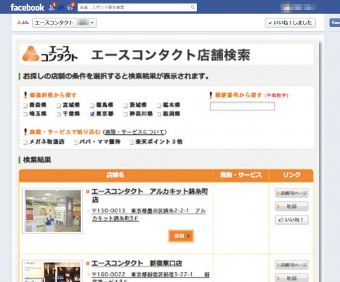コンタクトレンズの専門店エースコンタクトが全70店舗のFacebookページを一斉同時オープン!