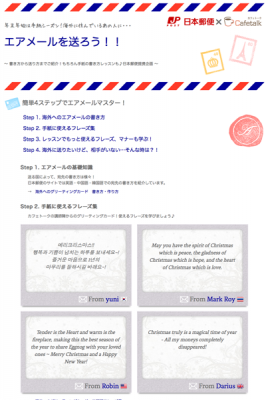 カフェトークの講師による実際のメッセージ・フレーズ例、そして実用的な内容を学べるエアメールの書き方レッスンをご紹介する特集ページをリリースしました。