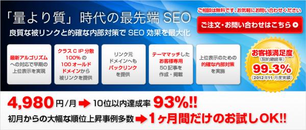 "量より質"時代の最先端SEO『SEOサポート』は単月契約のSEOサービスでありながら、お客様の契約継続率は99.3%(2012年11月度実績)。