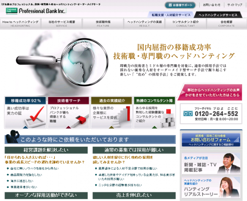 『プロフェッショナルバンク・サーチ』 http://www.pro-bank.co.jp/headhunting/