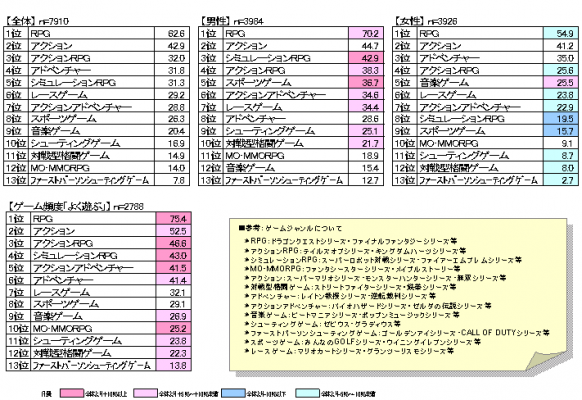 ゲーム頻度や、ゲーム機ユーザー別で、ランキングに目立った差はみられませんでした。