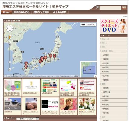 サイト閲覧者は、全国の希望地域ごとに痩身エステをマップ表示により、
