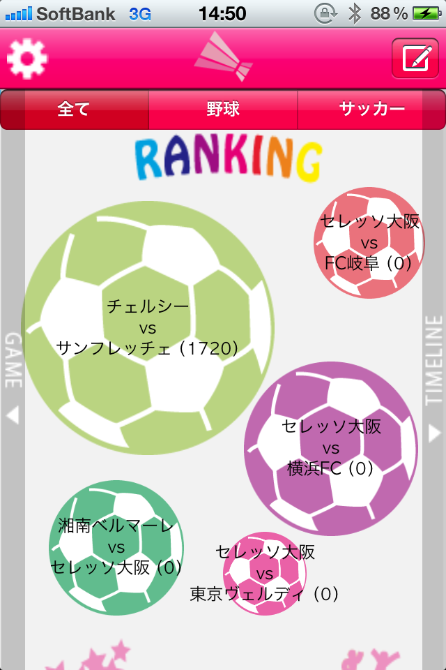 お気に入りのチームを選択すると、チームに関するtwitterのツイートをまとめて見ることが可能に!