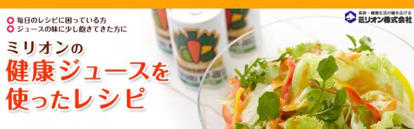 無臭ニンニク健康補助食品として27年のロングセラー「ミリオンパワー」、そして健康に配慮したミリオンの健康飲料シリーズ等を販売するミリオン株式会社(埼玉県さいたま市)は、「ミリオンの国産緑黄色野菜ジュース」をはじめとする“ミリオンの健康ジュースを使ったレシピブログ” を12月5日に開設しました。ミリオンの健康飲料シリーズは、その濃厚な味わいから調理用ジュースとしても幅広くご利用いただけます。レシピは毎週火曜、金曜更新予定です。ミリオンの健康ジュースで簡単・健康レシピに挑戦しよう。