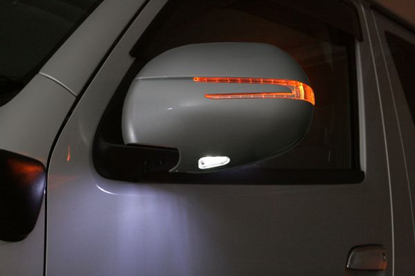 ■純正のドアミラーカバーを取り外し交換するタイプのドアミラーウィンカーLEDとなり、デザインはベンツタイプのアロー(ギザギザ)タイプを採用したモデルです。