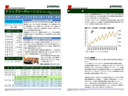 1 アナリストレポートの概要 (1)対象会社名(証券コード):株式会社クリップコーポレーション(4705)